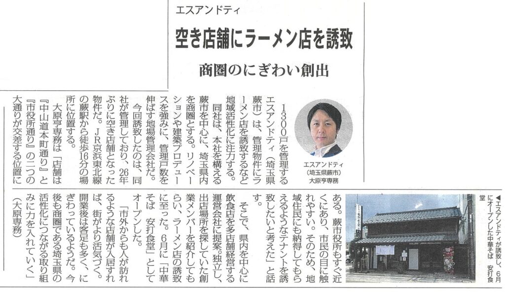 「全国賃貸住宅新聞 2021年6月28日号」に賃貸管理の取組みについて掲載されました -